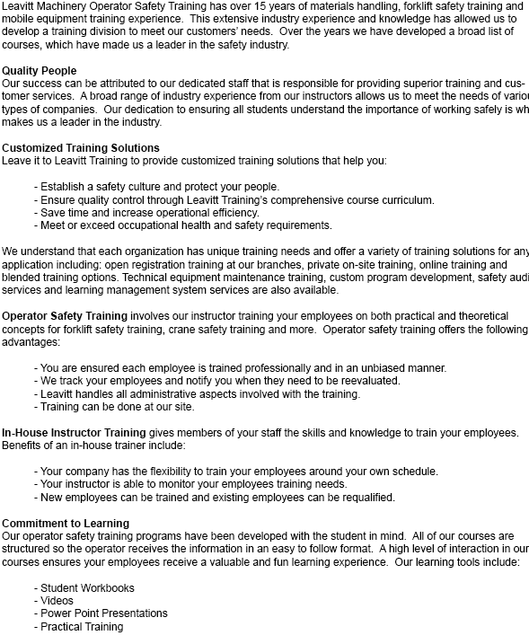 With such a great assortment of opportunities for certification, you are certain to find one that meets your needs. On top of that, we provide you two options for training. We can offer it on-site or at our location of business. Every course can be tailored to your equipment and workplace.